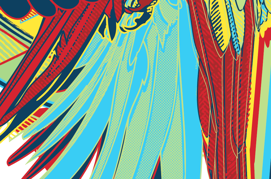 My process always begins with color. Each palette is drawn from reference material and wild places I love. In the Kambo Collection, the greens, yellows, and purples were pulled directly from photos I took of the frog in the jungle. El Guacamayo Malu carries the true colors of Malu’s striking feathers. I bring those hues into Illustrator, blending them with textures inspired by woodcut, ink, and brushwork.