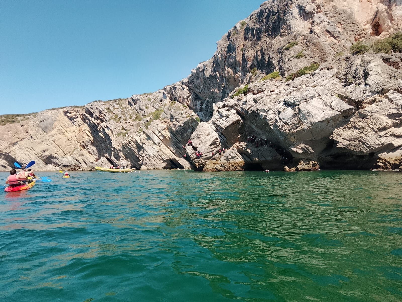 Rocky outcrops near the Atlantic coastal city of Sesimbra, seen from kayak.