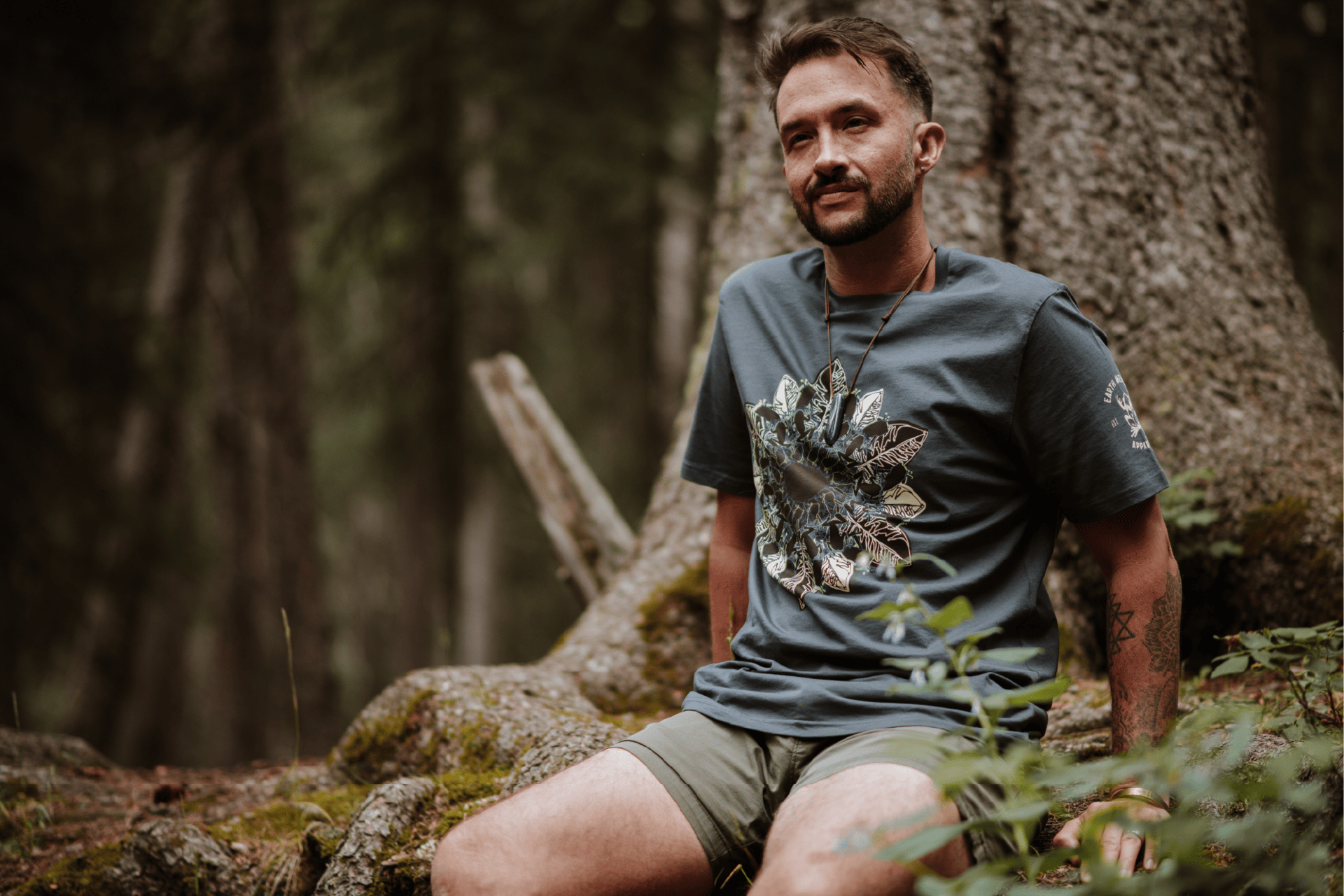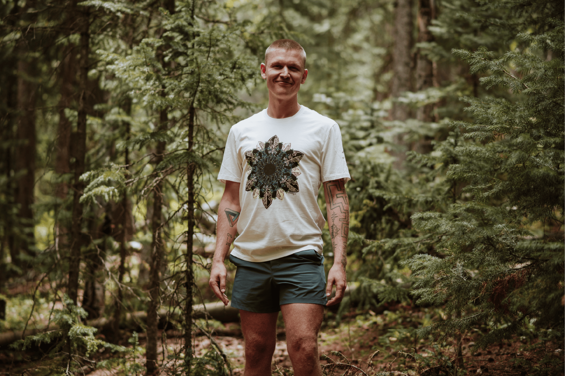 Garment selection: We opted for 100% organic cotton, ringspun and combed, making it soft and resistant to pilling. This design is available in unisex sizes in Terrain Grey and White Sand.